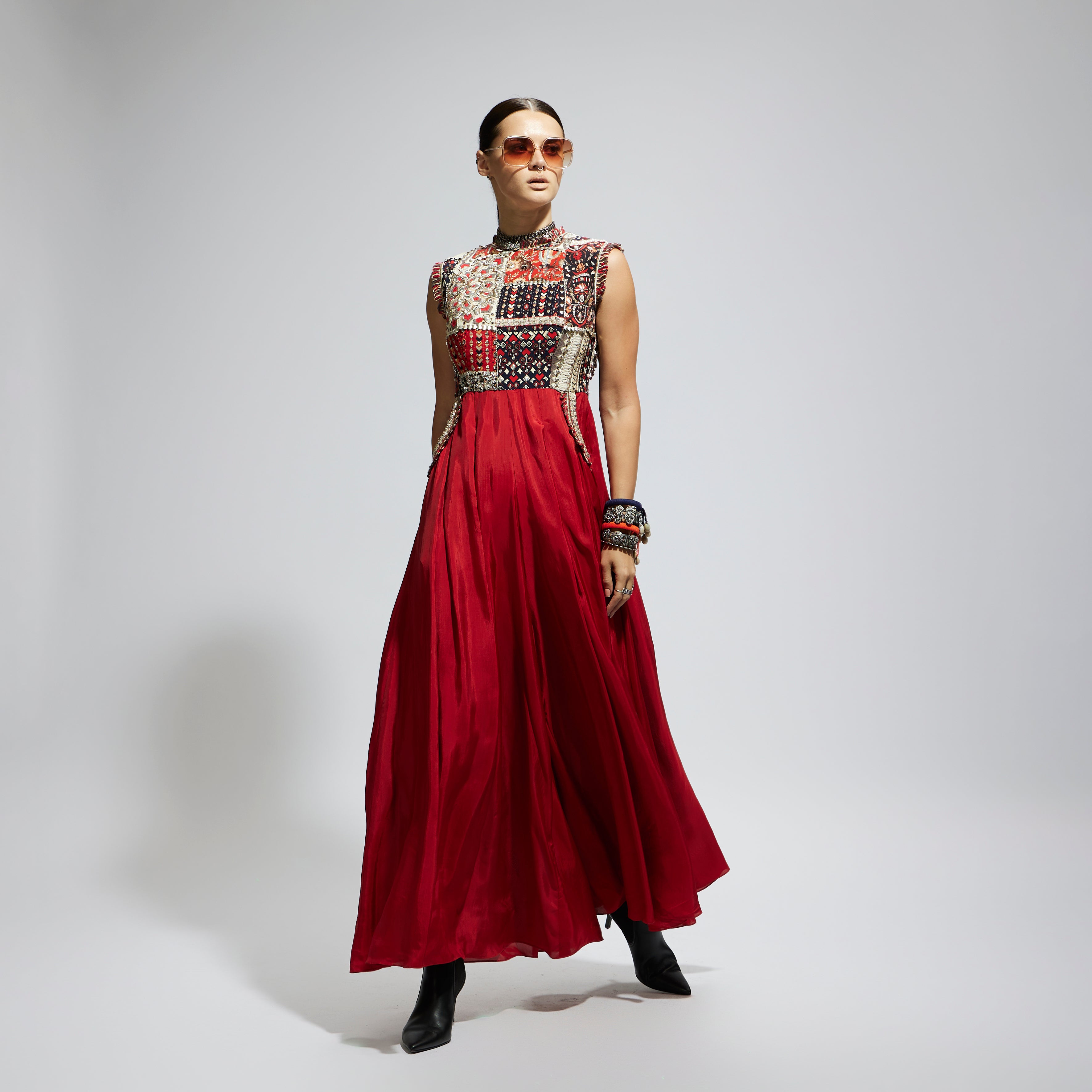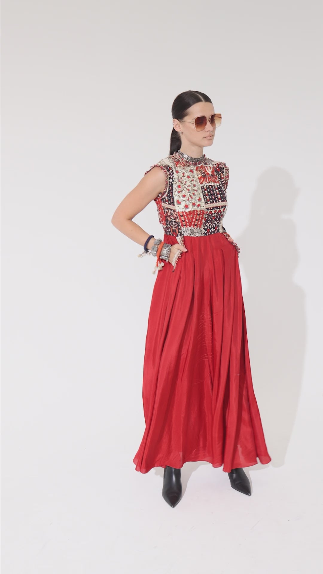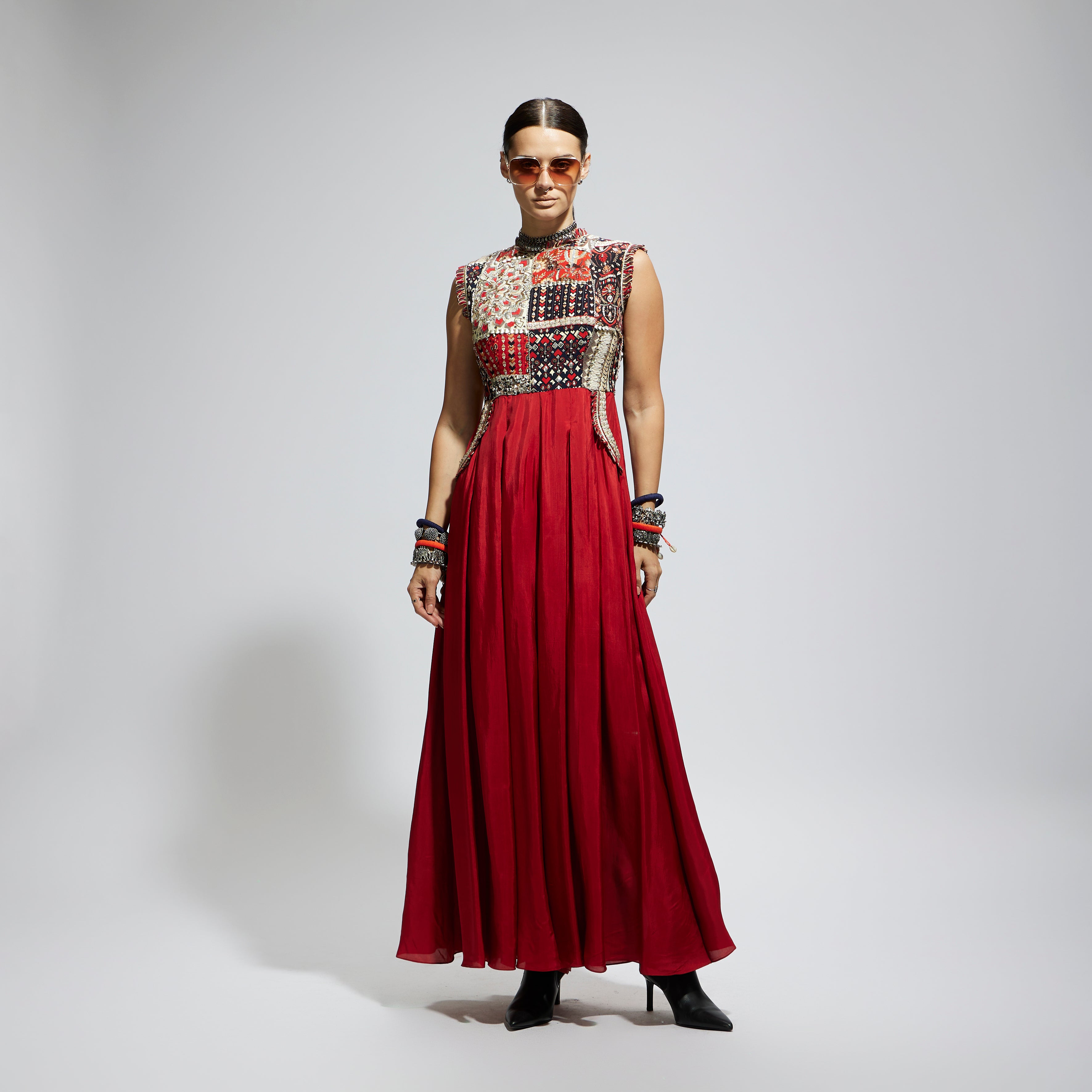 Featuring a terracotta patchwork jumpsuit with a cutout back, fabric habutai, and patchwork, Component 1.