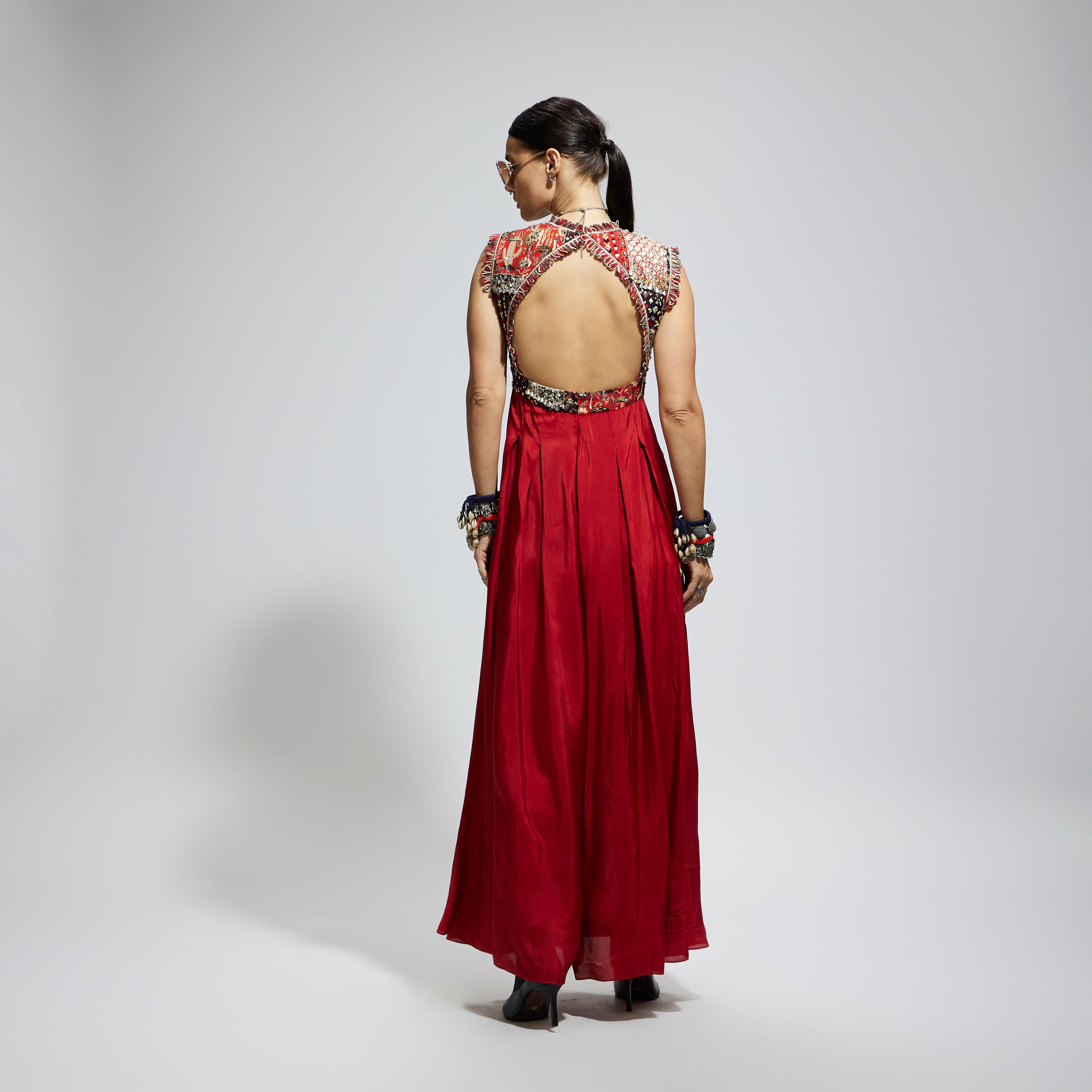 TERRACOTTA PATCHWORK JUMPSUIT WITH A CUTOUT BACK